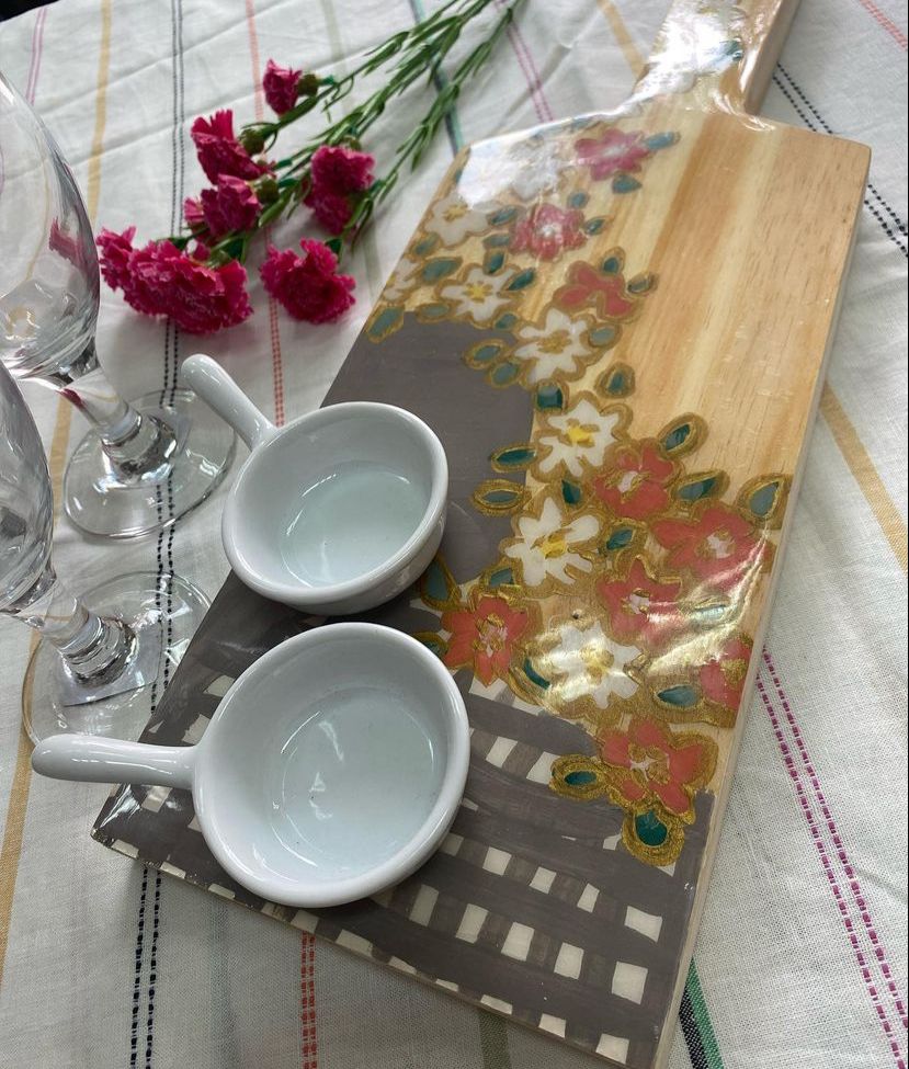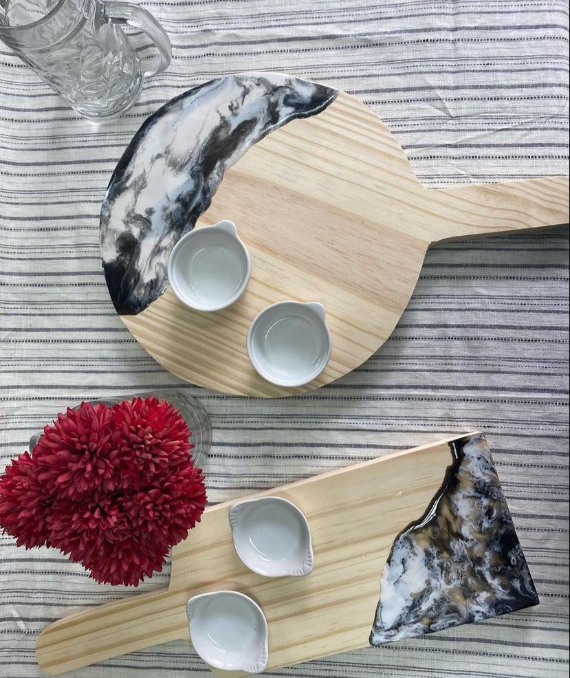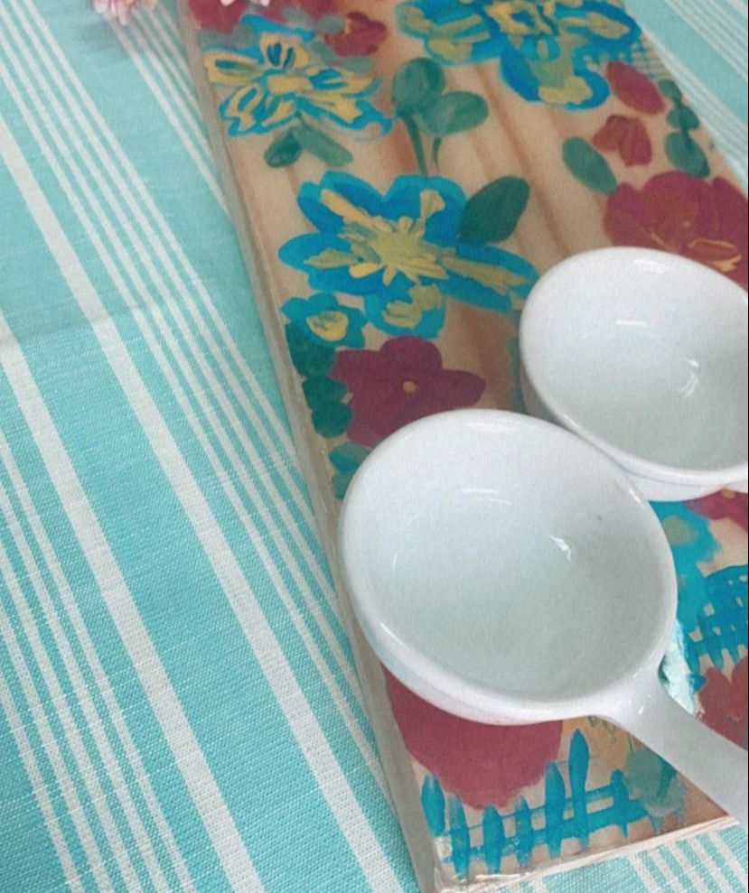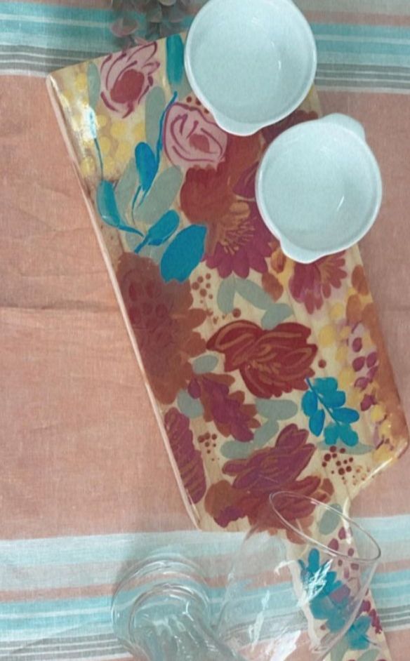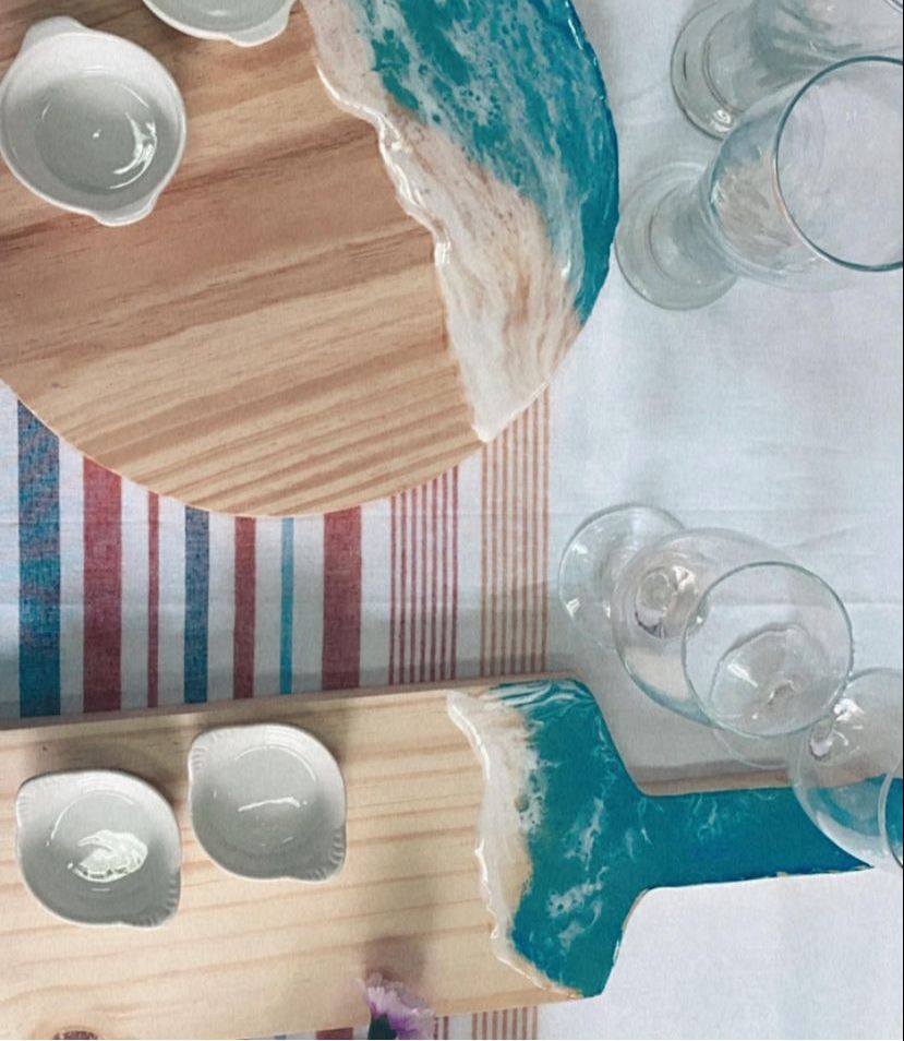 Tablas de madera, pintadas a mano. Protegidas con resina.